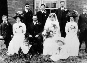 For more about those in the photo click - Ralph & Ethel Dell for Ralph and Ethel (both in the photo). click John William & Daisy Saunders for Johnnie Saunders. For the bride and groom see this page.