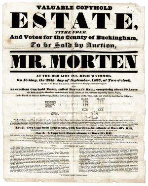 1837 Edward Anderson Purchased Lot 1, at the bankruptcy sale of Thomas Dell of Speen Farm. for £580.
