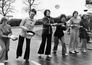 The annual Pancake Race organised by The Womens Institute, was instigated by Mollie Hickman (click Frank & Mollie Hickman for more about Mollie)
